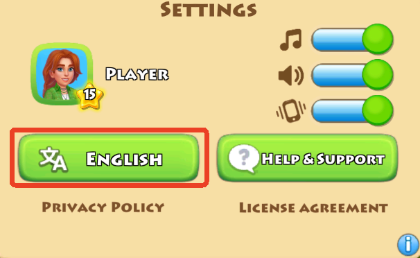 2、点击【ENGLISH】,开始更换语言。这里也能调整各种音量大小。
