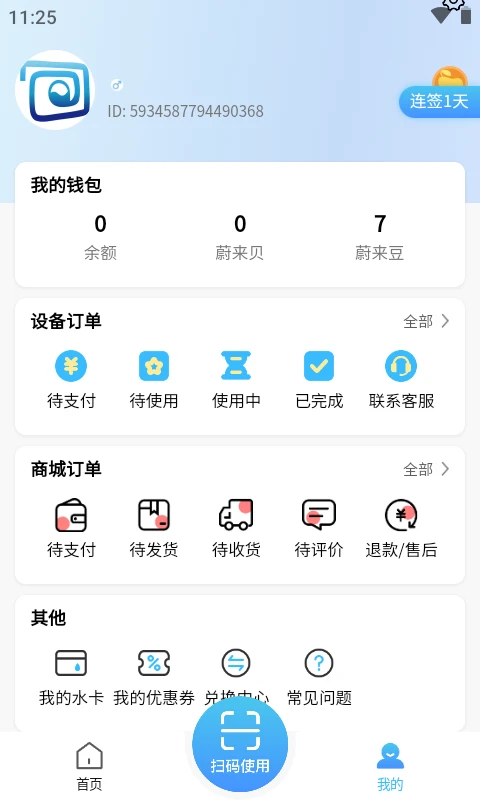1、在本站下载好软件包安装,打开软件。 2、首页部分:扫一扫、金额充值、优惠券、设备查找,优惠商品等。