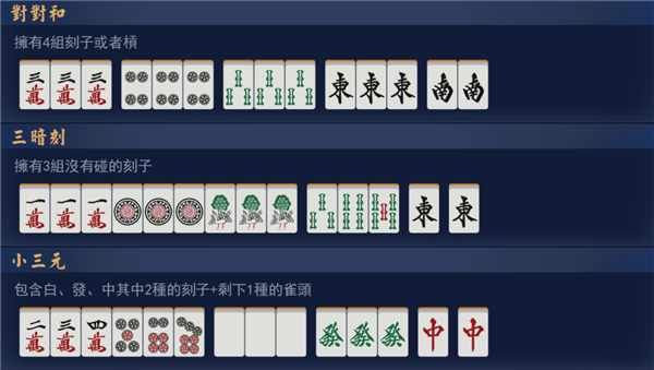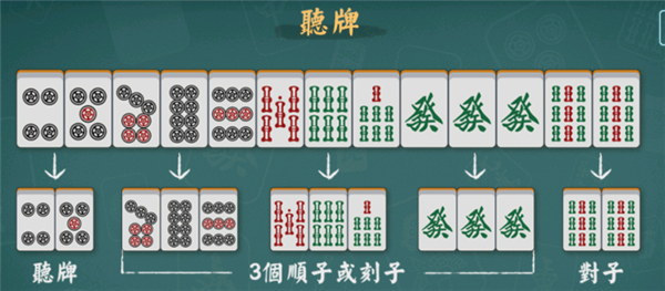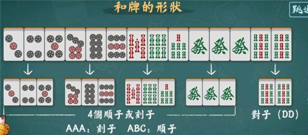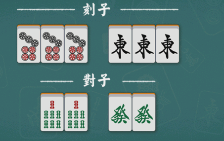 在讲解和牌之前,我们要先了解3个东西:顺子,刻子和对子。