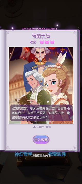 玛丽王后的最后两个结局分别为航向远方和命定的历史,想要达成这个结局需要菲尔逊7级好感度和路易十六7级好感度,需要较长的时间收集送礼材料。