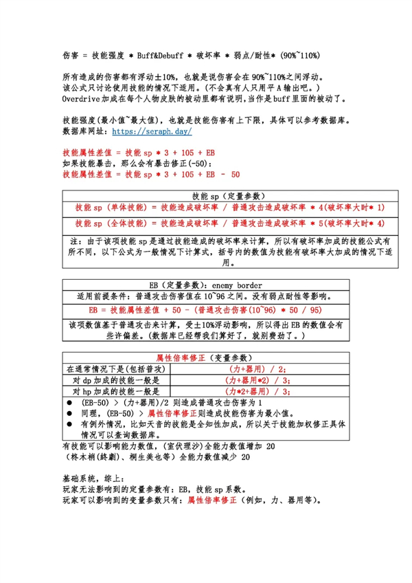基础威力值*暴击乘区*增伤乘区*攻击力乘区*减防乘区*抗性弱点乘区*领域乘区*破坏率乘区*降攻乘区*增防乘区*随机伤害浮动。