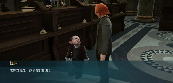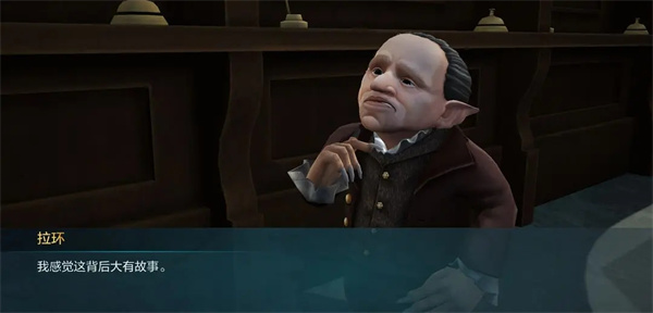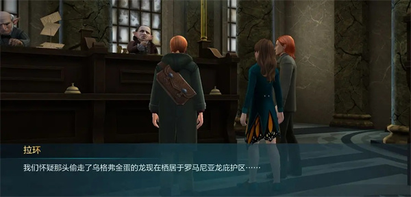 这里可以看出对于拉环的建模还是比较有特征的。此时拉环正在给主角一行人分配任务。首先拉环讲了个故事,引出了因为做工太过逼真而被野生龙偷走的金龙蛋的故事。这里也很好的致敬原著的描写。这里科普一下,罗琳笔下,妖精这个种族的生物比较排外,简单来说,“非我族类,其心必异”。而且妖精有一种独特的文化,只要是妖精打造出的物品,落到其他种族手里,都一定要拿回来。这也是在电影中拉环要葛莱芬多宝剑的原因。这里金蛋也是妖精打造的,所以拉环要派人拿回来。