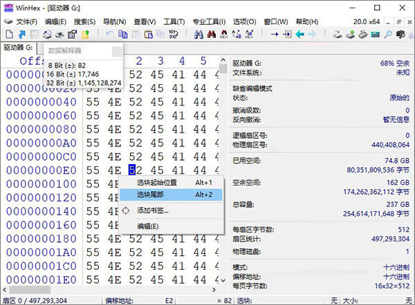 1、硬盘, 软盘, CD-ROM 和 DVD, ZIP, Smart Media, Compact Flash, 等磁盘编辑器... 2、支持 FAT, NTFS, Ext2/3, ReiserFS, Reiser4, UFS, CDFS, UDF 文件系统; 3、支持对磁盘阵列 RAID 系统和动态磁盘的重组、分析和数据恢复; 4、多种数据恢复技术; 5、可分析 RAW 格式原始数据镜像文件中的完整目录结构,支持分段保存的镜像文件; 6、数据解释器, 已知 20 种数据类型; 7、使用模板编辑数据结构 (例如: 修复分区表/引导扇区); 8、连接和分割、以奇数偶数字节或字的方式合并、分解文件; 9、分析和比较文件; 10、搜索和替换功能尤其灵活; 11、磁盘克隆 (可在 DOS 环境下使用 X-Ways Replica); 12、驱动器镜像和备份 (可选压缩或分割成 650 MB 的档案); 13、程序接口 (API) 和脚本; 14、256 位 AES 加密, 校验和, CRC32, 哈希算法 (MD5, SHA-1, ...); 15、数据擦除功能,可彻底清除存储介质中残留数据; 16、可导入剪贴板所有格式数据, 包括 ASCII、16 进制数据; 17、可进行 2 进制、16 进制 ASCII, Intel 16 进制, 和 Motorola S 转换; 18、字符集: ANSI ASCII, IBM ASCII, EBCDIC, (Unicode); 19、立即窗口切换、打印、生成随机数字; 20、支持打开大于 4 GB 的文件,非常快速,容易使用; 21、广泛的联机帮助。如何利用winhex官方版恢复数据?
