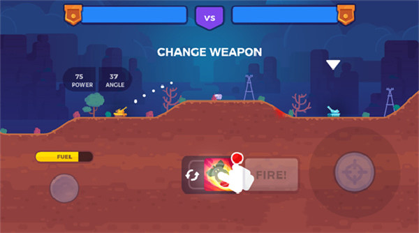 7、当玩家调整好角度,点击FIRE即可进行射击;