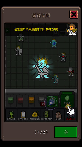 1、合成僵尸,开发出高等级的僵尸 2、唤醒僵尸,学习特殊能力 3、建立僵尸部队开始打猎 4、各种老板、外星人、突然变异 5、研究所开发出古代遗迹,提高僵尸的能力 6、多种类型的僵尸(外星人僵尸、特大僵尸、表彰僵尸等)合并僵尸游戏入门指南