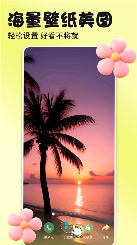 1、动态&小视频 热门高清视频动态壁纸,放到手机锁屏上一起嗨,更多令人颤抖音乐动态壁纸,快让手机炫起来~ 2、高清&无水印 高清1080P大图、多大屏幕都能随便用,壁纸美图清晰好看不打折 3、实用&易操作 不再为朋友圈、微博及聊天软件的配图而烦恼,壁纸多多海量美图,随时随地轻松搜索一键搞定 4、分类&内容多 情感语录、心灵鸡汤、美女明星、可爱萌宠、文字物语、自然风景、情侣壁纸、头像表情等应有尽有 5、主题&套图多 桌面壁纸+锁屏美图,两个在一起才完美。更有精选海量套图图集,好看又好玩哦 6、新鲜&美图多 每日更新10000+左右滑动浏览高清大图,点心收藏,人气爆款美图不再错过壁纸多多app壁纸使用教程