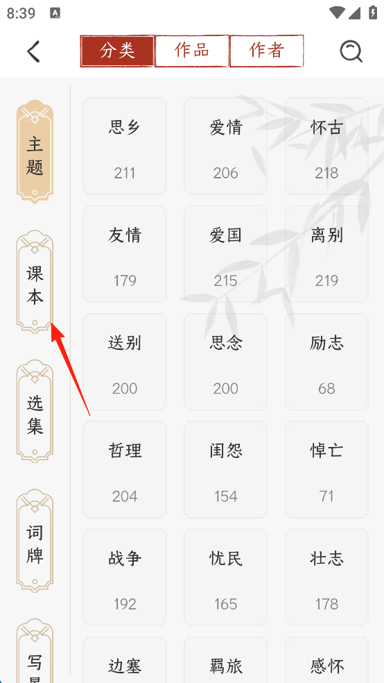 1、诗词文库浩如烟海 覆盖唐诗、宋词、文言文、古籍等多个领域,用户可以轻松找到自己感兴趣的诗词。 2、分类详尽全面 包括主题、选集、词牌、写景、名山、节气、时令等,用户可根据兴趣轻松寻找相关内容。 3、智能搜索系统 可以通过智能搜索按朝代、作者找到特定的诗词,提高检索效率,方便用户快速找到感兴趣的作品。 4、跟读背诵名家朗诵 提供名家朗诵功能,用户可以跟读名家的朗诵,更好地理解和记忆经典诗句。千古诵诗词App如何寻找课本诗词中的名句