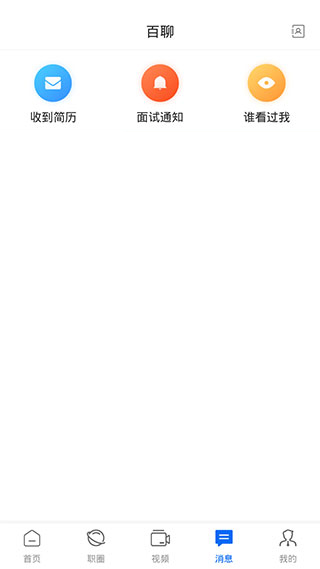 4、【消息】:这里分为收到简历、面试通知和谁看过我三大块,你所联系过的求职者也都可以在这里看到。