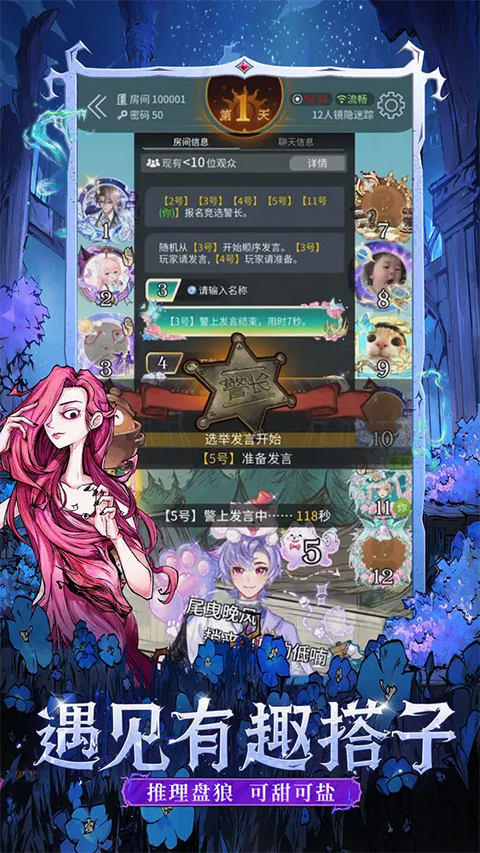 1、官方正版,明星主播都在玩 拥有狼人杀R相关商标,还原面杀玩法,带来沉浸式心跳体验!全网首发炼金魔女、狼鸦之爪、纯白之女、血月使徒、咒狐等角色,挖掘你的巅峰演技!人气主播、偶像明星每晚组局, 随时遇见你的心动~ 2、贴心教程,萌新小白秒上手 全面的新手指引,简单的操作规则,让你秒变“老司机”愉快开狼!观战模式围观大神百态,吃瓜群众的快乐随时拥有! 3、公平烧脑,登顶荣耀狼王 聚集全网年轻人,不插麦、无延时,120秒畅所欲言,随时看票型,每一局都能秀出你的骚操作! 4、趣味玩法,随时开派对 超多娱乐休闲玩法,无聊想说话,马上来派对!闲聊唠嗑、K歌听歌、互动交友、pia戏、CPDD…超多主题任你选! 5、情侣装扮,秀出独特个性 古风“凤求凰”、二次元“偶像歌姬”、欧式“精灵王”……世界这么大,而你喜欢的风格,这里都有!搭配城堡、村庄、英伦小镇等特色主题,给你不同的沉浸式体验! 6、步步相随,心动追逃 全新跑跑狼模式上线!狼人潜伏搞破坏,好人抱团做任务!先看见,再推理!发言少,爆笑多!三分钟一局,翻车反转,根本停不下来!角色介绍