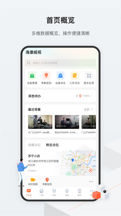 1、低成本云视频 扫码快速添加设备,提供海量设备管理与流媒体并发能力,随时随地查看云端视频,无需任何运营及运维管理成本投入。 2、标准高效管理 远程巡查考评、员工考勤签到和工作日志、异常单据回溯,提供高效标准化管理工具,让门店现场变的触手可及。 3、丰富数据统计 提供门店客流量统计、区域滞留分析、订单统计等功能,帮助企业掌握营销场景情况,丰富线下数据。 4、AI智能分析 提供场景化AI应用算力,智能检测,实现营销场所的智能可视化营销及管理赋能,例如后厨穿戴、后厨老鼠、货架缺货等检测自动告警推送。 5、多样开放能力 提供SDK、OpenAPI等多种形式的对外开放接口,满足连锁零售行业多样化的对接需求。海康威视云眸管理平台手机版使用教程