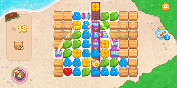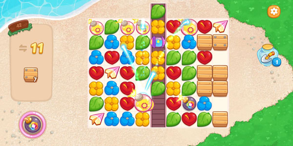 《花儿爱消除》中,随着消除难度的上升,消除元素越来越复杂,单纯使用单个道具已经无法在规定步骤内达成目标了,这时候就需要使用组合道具能发挥更大的消除效果。