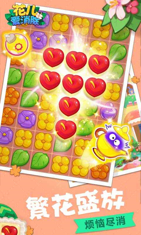 经营花店,田园牧歌 放下生活琐事,在这里开个花店,远离车水马龙,时间变得很慢,生活也变得很慢。你可以每天在花香和露水中醒来,从窗户里看到日出的第一缕光。 专属小岛,由你创造 想在庭前种上爬满屋檐的玫瑰,还是在大大落地窗的阳台上摆满向日葵,亦或按照彩虹的颜色搭一个花架,打造拥有独一无二美景的小岛,全凭你的喜好。 珍贵回忆,感人剧情 在这里有热情的朋友,温馨的故事,发生在你们身边的点点滴滴都是宝贵的回忆,婚礼,派对,篝火晚会,你们可以度过最美妙的夜晚 独特玩法,欲罢不能 全新的点击消除玩法,让你沉迷在花朵般绚丽的色彩中,配合道具和精妙的关卡设计,简直让人停不下来!花儿爱消除道具介绍