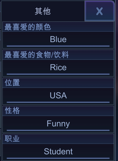 7、点击【其他】你还能编辑oc最喜欢的颜色和食物,以及性格和职业等。