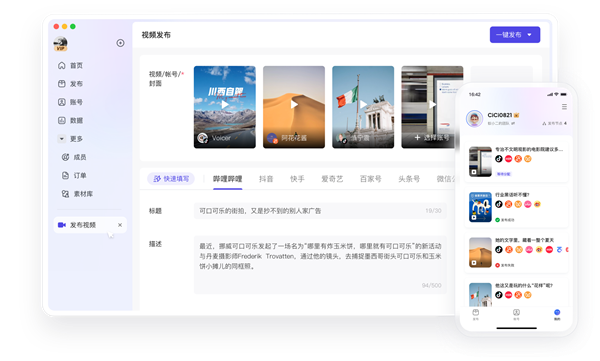 蚁小二Mac版是针对mac系统用户打造的一款新媒体运营管理工具。应用支持40+主流平台、60个账号同步管理、500+账号管理,用户只需要三分钟就可以解决全平台的一键发布,同时还支持图文、视频、动态的发布,为你带来完美的一站式服务,提供了发布管理、账号管理、数据统计、质量检测等功能,满足用户的各种自媒体运营需求。还可以选择按内容、部门员工和账号多个维度数据进行,筛选查询,数据更新延时不超过4小时。有需要的朋友可以下载体验一下。