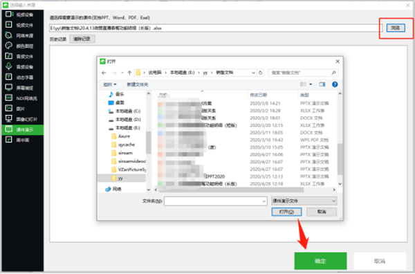 2、点击右侧【浏览】打开本地文件管理器,可以选择对应文件,并点击“确定”即可。支持PPT、Word、PDF、Excel等格式;(注:支持上传200M以内文件)