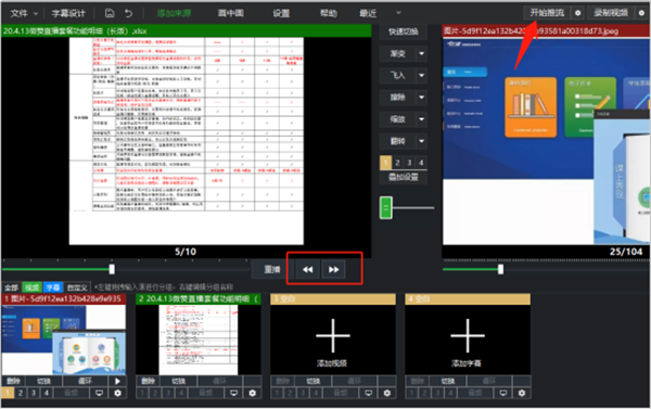 7、设置完成,点击前进/后退按钮,可以播放课件内容,通过结合画中画、背景抠图、美颜等功能,将讲师和PPT内容完整呈现在直播中;