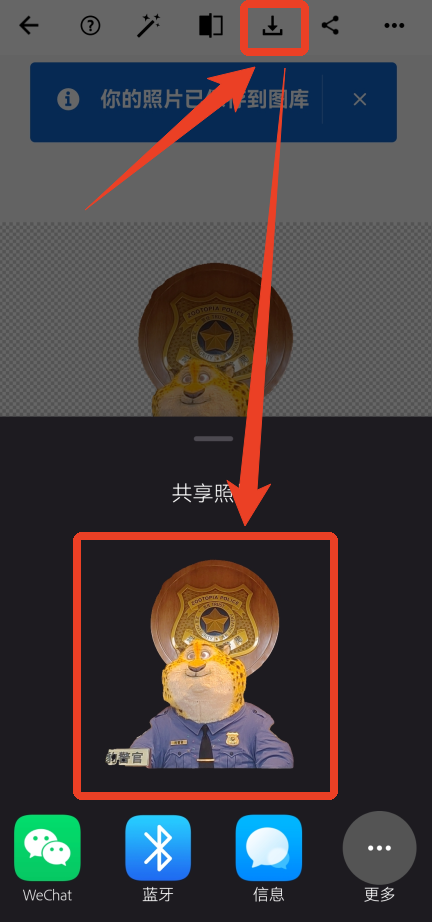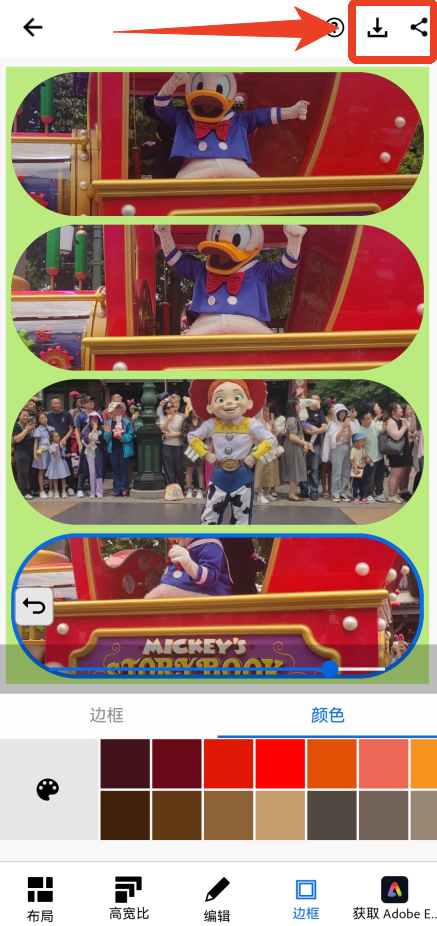 6、全部完成之后就能点击右上角第二个下载按钮了,也可以分享给自己的好友。