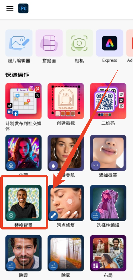 1、图章工具箱:图章仿制工具、修复画笔工具,还有特效画笔工具、快速选择工具、各种选框工具等; 2、从多出新建项目来源:照片图库、创意云、设备相机、空白文档、剪贴板,创意云支持同步上传功能,需注册Adobe账号 。可对项目进行如下操作:删除、复制、移动、创建文件夹,支持图像导入,可选开关演示模式。 3、内置帮助选项:在绘制项目界面可进行修改选区,撤销和重做,选择画笔、印章等工具,还能对图层进行管理操作; 4、图片普通操作:剪切、复制、复制已合并部分、清除、全选、调整边缘、显示指针 5、图片调整:黑白、饱和度、自动调整、温度、替换颜色、色彩平衡、减少杂色、反色、色阶、曲线、亮度/对比度调整; 6、4大类FX特效处理:基本处理、风格化、艺术效果、照片,共36种FX特效,只需点击喜欢的效果,然后进行微调即可; 7、更多选项:裁剪图片、调整图片大小、旋转方向、添加文字、变换图形、扭曲处理、填充/描边、颜色渐变、淡化等 8、支持镜头光晕:可选择6种类型,自定义光晕强度,设置光晕比例,画笔支持调整大小、硬度、流量和不透明度; 9、可快速管理图层:对当前图层进行不透明度调整及混合选择:滤色、变亮、叠加、正片叠底、差值、线性减淡。photoshop汉化版手机版怎么抠图