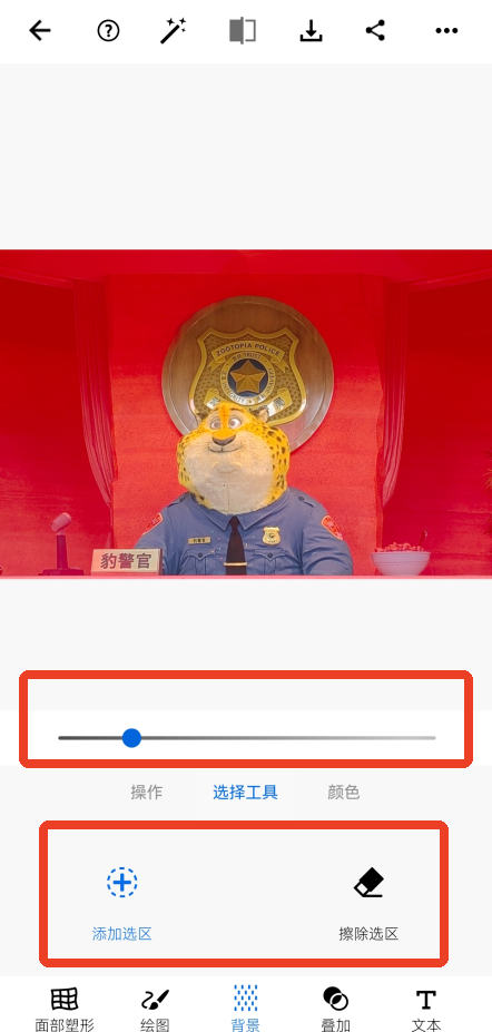 2、也可以直接在编辑图片的页面下方向右滑找到【背景】。