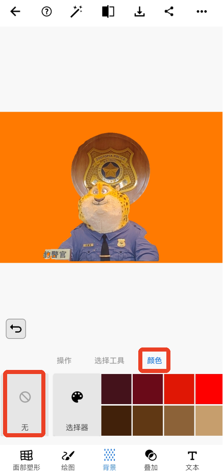 5、抠完之后可以添加不同颜色的背景,不过只有纯色背景。不需要背景就点击下方左边的无,然后再去操作栏那里点击移除就可以了。