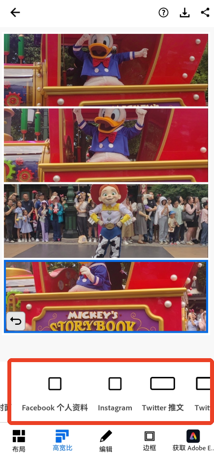 3、之后就能开始设置高宽比,除了有手机的比例尺寸,还有各种社交软件内背景、略缩图、标题等,以及常见的4:3、16:9等比例。