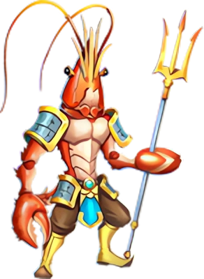 手持三叉戟,身穿黄金铠,眼神犀利,仿佛随时准备刺向周遭的鱼群。 当你成功击败虾兵后,他会使用手中的三叉戟,攻击整个屏幕中的鱼儿,获得海量金币。