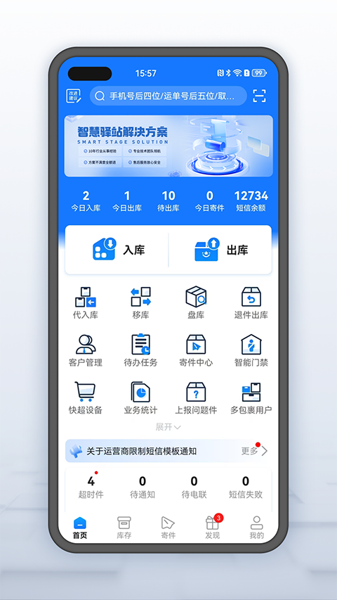 1、送货上门支持离线出库、拍门口照; 2、新客户电联包裹优化入库提醒; 3、抖音到店订单异常取消支持上报; 4、寄件驿站自有面单支持查询网点分配记录; 5、寄件订单录入,地址支持自定义是否存入地址簿; 6、修复员工管理获取验证码问题;