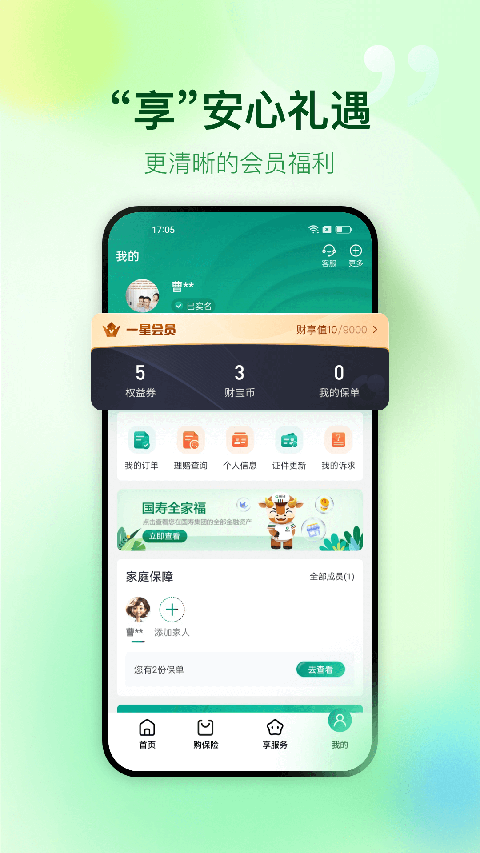 畅享保障 任性保:旅游出行、交通意外、健康医疗、重大疾病、分红年金,款款精品任您挑选。 轻松查:保单信息、保障权益,一目了然。 随心借:仅需三步,一分钟搞定30万以下保单借款。 瞬时赔:自助理赔,快速上传报案资料在线审核。 服务经理:1v1专属服务,您的私人管家。 安心领:轻松一点,红利、养老金,领取快速又安全。 智领生活 要健康:可信赖的医疗服务,关注您的健康品质,更有健康自测、健步走等活动邀您加入。 开心玩:多样化的属地活动,吃喝玩乐一网打尽。 e小宝:有问必答,服务我在行,文字、语音交互任你选。 智测身价:了解保障需求,发现保障缺口。 猜你喜欢:快速满足您的产品需要。软件功能