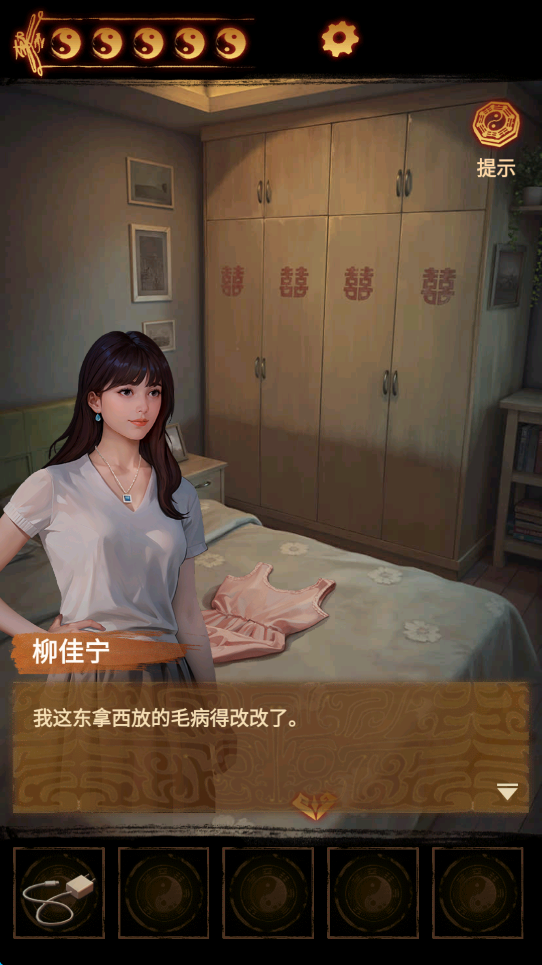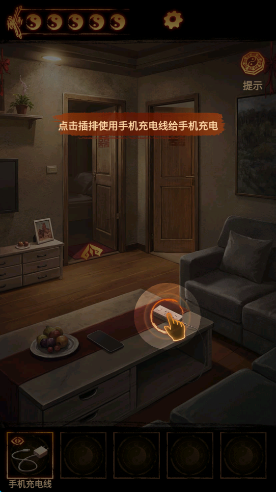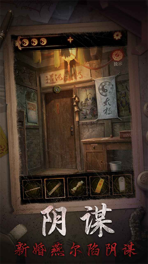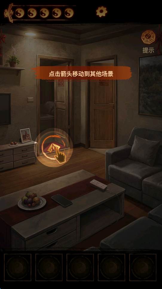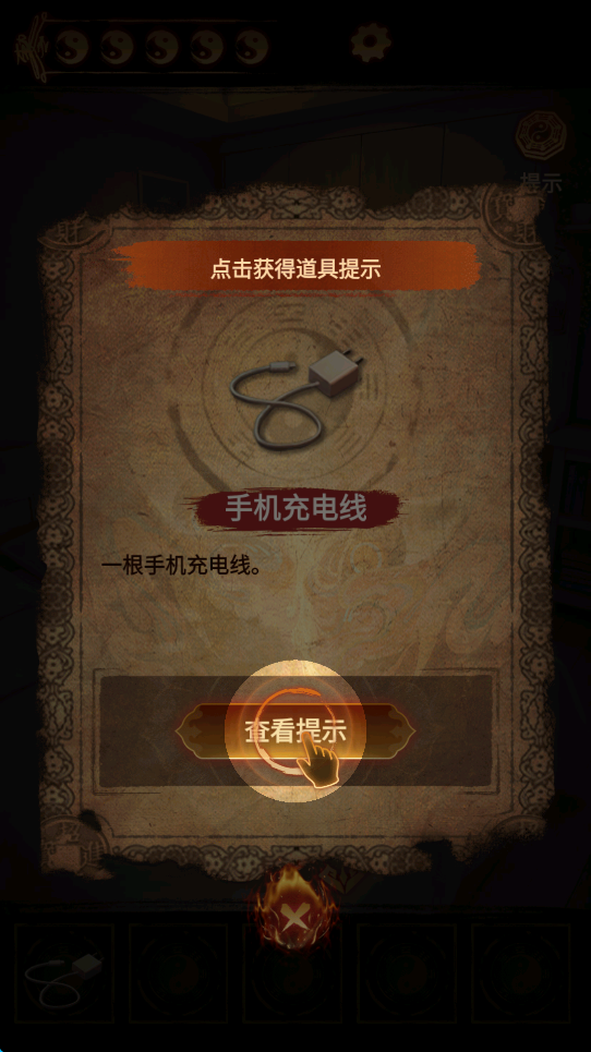 1、游戏中主要是靠点击来收集各种线索,有时候也往往缺一件重要道具无法破解难题,但又实在找不到,玩家就可以点击屏幕右上角的“提示”。