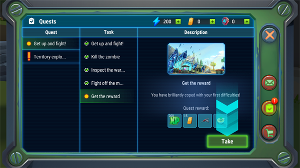 6、在任务栏可以查看当前的任务,完成任务会获得各种奖励。