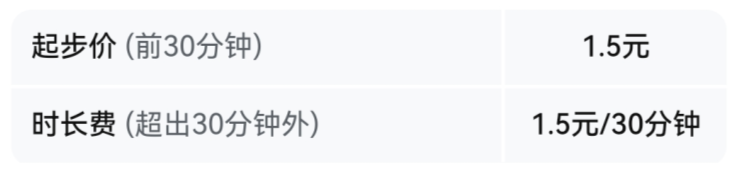 1、单车/自行车 骑行费(起步价+时长费) 骑行费用以开锁时展示的计费规则为准,时长费不足1个计费周期时,按1个计费周期计算费用。