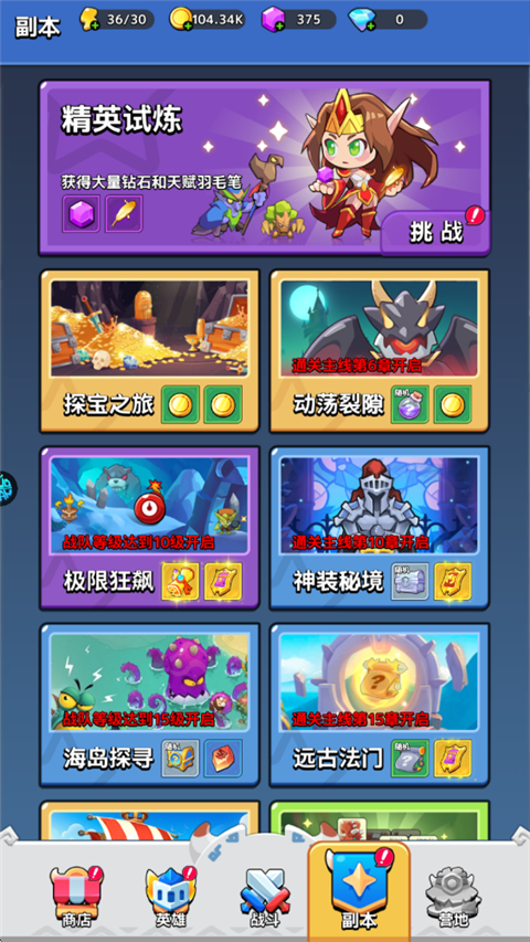 3、如果需要资源可前往副本,在副本中不同的副本可掉落相应的资源;