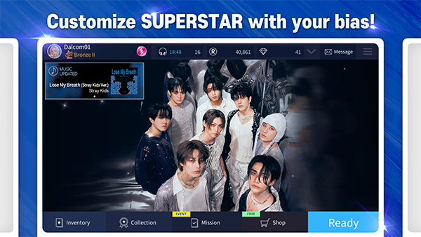 1、来自JYP ENTERTAINMENT的10位艺术家 2、播放JYP ENTERTAINMENT艺术家的48首歌曲 3、每首歌曲3种不同难度级别(EASY / NORMAL / HARD) 4、有趣的卡组系统,与其他人比较一下吧;各曲目都有简单、普通、困难等难度 5、收集并装备明星卡片,提高游戏属性;通过获得最高分数的5首曲目进行每周排名 6、根据每周排名,将决定升降等级,每周与全新的20名相同等级的用户竞争SUPERSTAR JYPNATION的艺人列表介绍