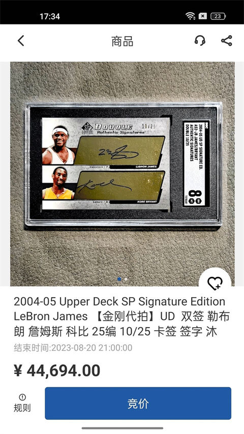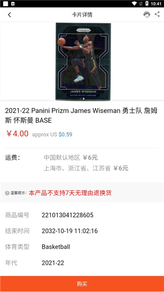 1、在此可以买到各个篮球明星的球星卡片,遇到的话就可以直接购买。 2、足球明星卡片的话也能在这里购买,在线可以查看各个卡片的详细信息。 3、如果对BOX盒卡感兴趣的话可以在此慢慢的挑选,选到喜欢的盒卡就能直接购买。 4、如果对卡片价格有异议的话可以在线议价,能够在线与卖家实时的讨价还价。 5、在此可以参与球星卡片的竞拍活动,只要没有人与自己竞争的话就能获得卡片。 6、自己可以在此出售个人拥有的球星签名卡片,这里支持卡片信息的手动录入。常见问题