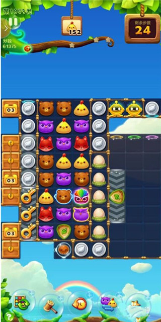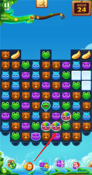 继续找机会创造魔力鸟出现,三个魔力鸟出现,先消二个挨着的魔力鸟。