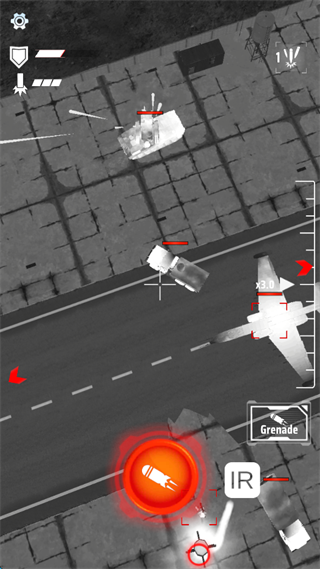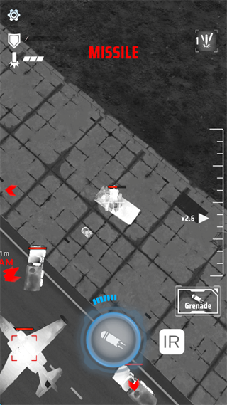 4、点击屏幕下方的“红色投弹”就可以投放炸弹,步兵可以通过防空导弹进行防空,并且有跟踪效果,轰炸过程中,最后时刻移动,不建议悬停轰炸。
