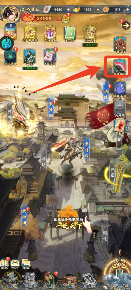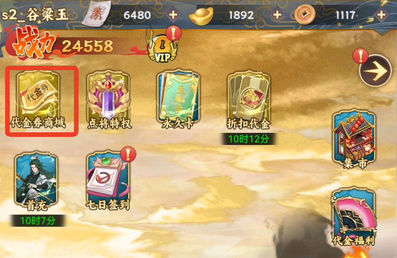 每天登录签到可以领取6480的充值代金券,可以用于购买大部分直购礼包。