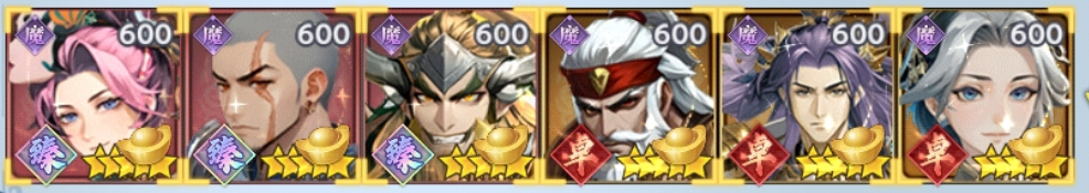 该阵营推图优先均可主C魔貂蝉(魔貂蝉可引爆魔噬效果,提前结束战斗)、副C魔典韦(AOC伤害,高几率附加的震效果高伤害的同时还可给己方带来大量的回复)、单体偷攻魔许诸(魔许诸可偷取怪物的攻击,推塔伏妖的神将)、防驱散魔黄盖(魔黄盖在场可防己方增加的魔噬效果被驱散)、主坦魔袁绍(拥有高额免伤的同时还可反击携带魔噬的神将)、辅助洛神甄姬(洛神甄姬是多功能辅助,可护盾可回复,还能加高额属性)