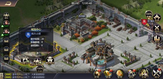 1、跨服战分为城门战和内城战两个部分。城门战中对阵的两个服的玩家分别进攻一侧城门,守卫为NPC部队。首先攻破城门的一方将优先进入内城抢先占领城内建筑区域。而后进入内城的一方则需要从敌方手中抢夺了。
