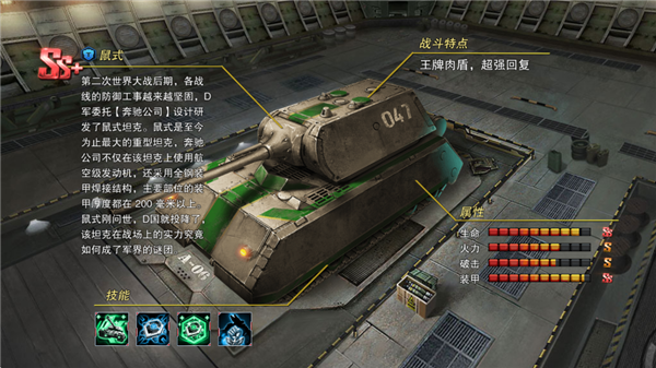第二次世界大战后期,各战线的防御工事越来越坚固,D军委托【奔驰公司】设计研发了鼠式坦克。鼠式是至今为止最大的重型坦克,奔驰公司不仅在该坦克上使用航空级发动机,还采用全钢装甲焊接结构,主要部位的装甲厚度都在200毫米以上。鼠式刚问世,D国就投降了,该坦克在战场上的实力究竟如何成了军界的谜团。