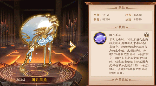 浅解:细心的玩家能看出来,其他神兵小编推荐的是具体武将,而闭月团扇,小编针对的是站位。在所有神兵当中,闭月团扇是唯一具有强效控制的神兵,高额百分比攻击力的中毒效果,以及沉默与降低敌方伤害,适合各阵营的一号位,优先出手,打出控制,抢占先机。如此强势的神兵,确实至今为止来源也是比较少,只在部分周期活动中出现,也一直没有加入至尊月卡的礼包当中,在平民玩家有条件的前提下,闭月团扇一定要及时拿到手,给予阵容强度的提高,并不是一星半点,且合成初期的闭月团扇,就可上阵,效果理想。此刻心愿商店中闭月团扇碎片的兑换已经开启,虽然数量不多,每天3片,但是对于平民玩家来说,毕竟是好事,拥有了稳定来源,未来可期