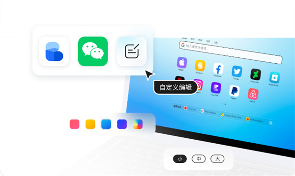 主页提供给用户完全自定义标签的区域,可以添加任意网址到这里,网址的icon、名称依你所求灵活定义。常用的网址搭配喜欢的icon,制作只属于你自己的标签主页。