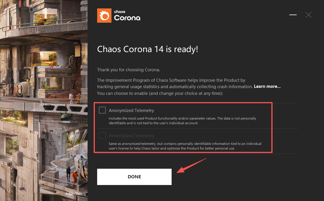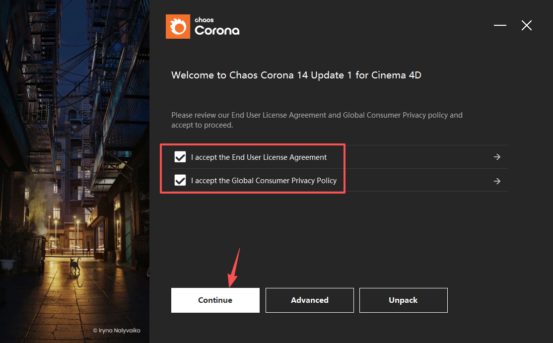 1、双击 chaos-corona-14-update-1-3dsmax.exe 开始安装;