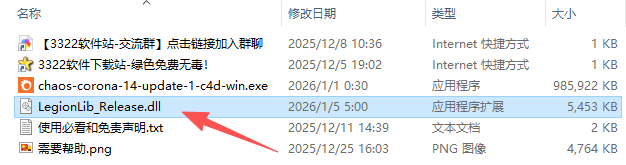 11、打开C4D软件安装目录,找到对应路径下的\plugins\corona文件夹,将LegionLib_Release.dll复制文件夹替换即可