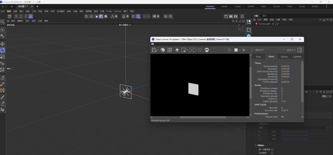 12、打开C4D软件,在顶部功能栏里面就有Corona了,然后测试渲染正常就可以开始使用了