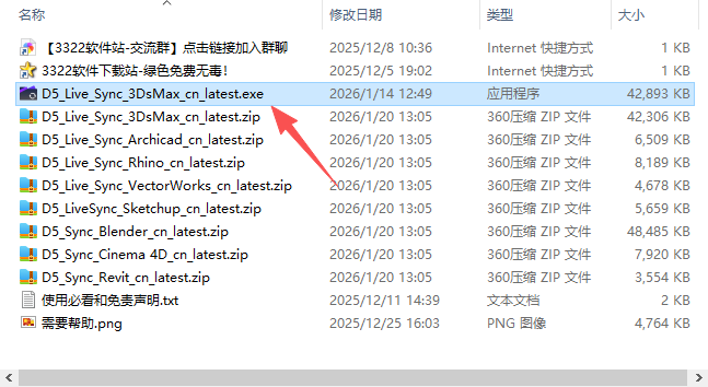 2、双击 D5_Live_Sync_3DsMax_cn_latest.exe 安装程序;
