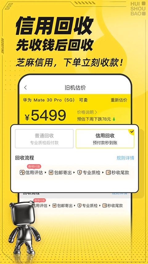 1、信用回收:先收钱后回收,下单立刻收款! 2、高价回收:旧机换钱,回归价值! 3、以旧换新:正品新机,品质保证! 4、顺丰包邮:服务到家,无需出门! 5、快速收款:确认回收,当天付款! 6、隐私清除:信息清理,不留痕迹!更新日志