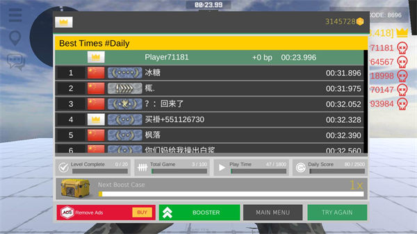 4、玩家掉下去即会结束游戏,还会给玩家排名