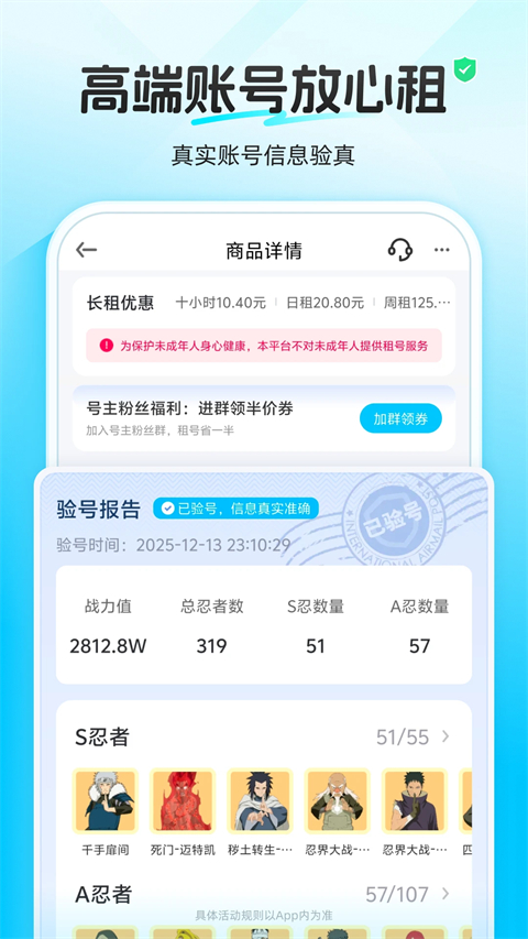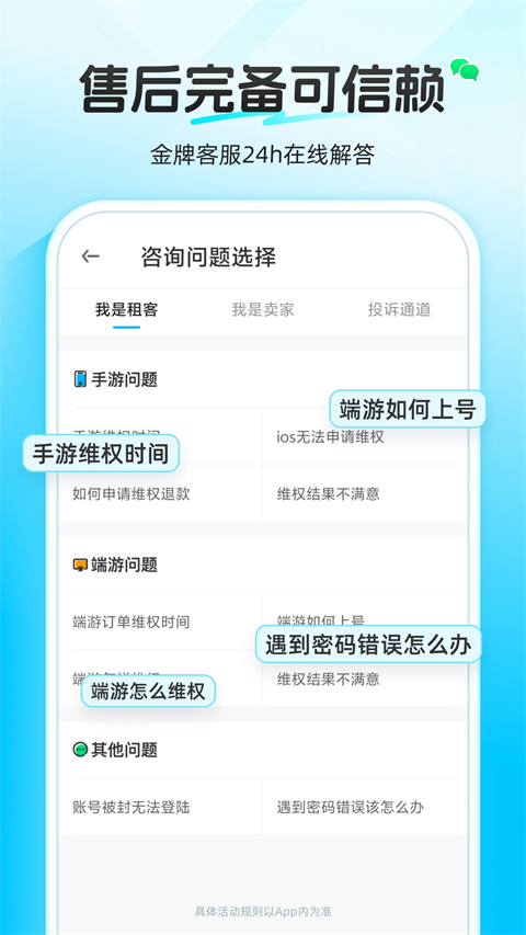 【新人注册福利】注册立即领取豪华大礼包,精品游戏低价玩 【安全正规租号】精品游戏租号玩,创造绿色租号环境 【特价账号】每天都有限时特价账号等你来哦 【超值服务】专业在线客服24小时全程陪伴您的使用 【一键上号】直接复制账号密码至您的游戏客户端进行登录更新日志