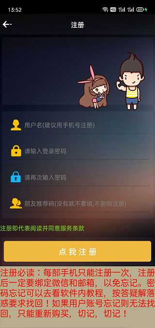 2、点击注册并输入用户名和密码;